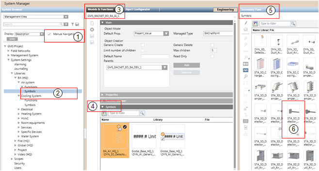 In System Browser, select the symbol library you want to use. For example, Project > System Settings > Libraries > L1-Headquarter > BA > [subsystem]> Symbols.